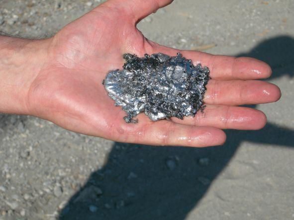 Выколачивали засохший электролит и крошили мягкий металл в консервную банку. Или в миску: