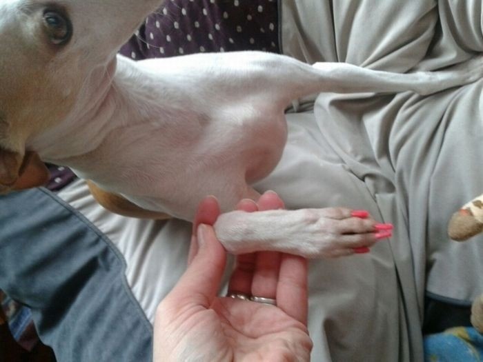 Интересно, как правильно говорить, собачий маникюр или педикюр? Чтобы вы не подумали, что это жестокое обращение с животными, обращаем ваше внимание на то, что для покраски когтей ипользуется экологически чистая специализированная косметика, созданная специально для ухода за животными. Поэтому, если вы вдруг решите сделать такую же красоту и своему любимцу, обязательно обратитесь за помощью в специализированный магазин.