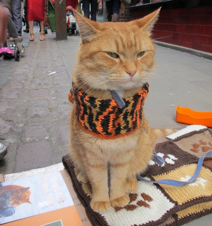 История о том, как приблудный кот по имени Боб и лондонский уличный музыкант Джеймс Боуэн стали друзьями и партнерами, покорила множество сердец. Книга «Уличный кот по имени Боб» (A Street Cat Named Bob) шесть месяцев держалась в первой десятке бестселлеров.