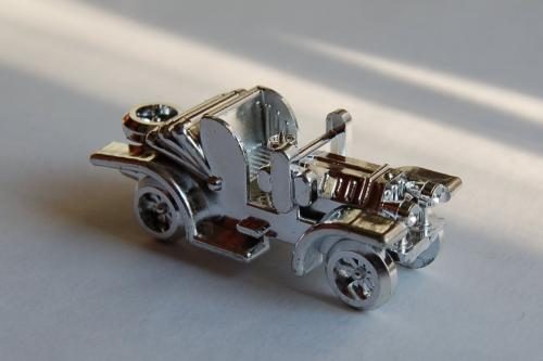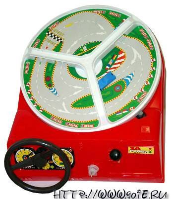 Она была на батарейках и даже имела ключ зажигания. Магнитная машинка ездила по кругу. Вернее, она стояла на месте, а круг вращался и надо было просто уворачиваться от препятствий.