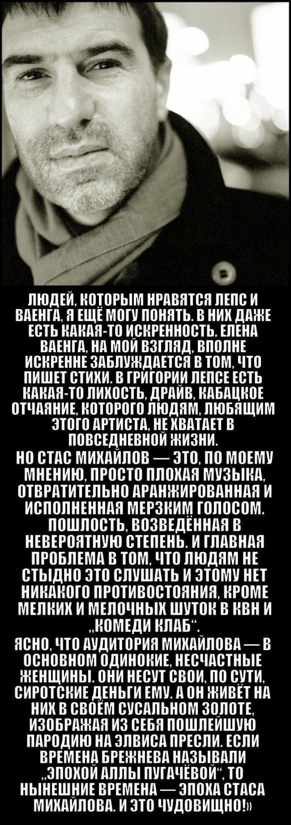 Понравились почти все цитаты. Стас Михайлов.Это певец для аудитории более старшего возраста