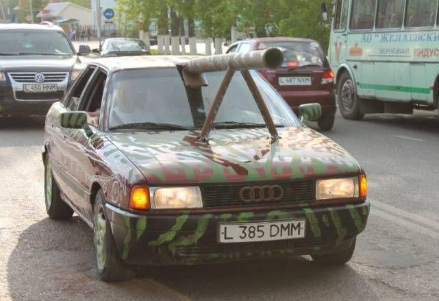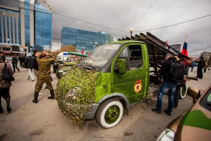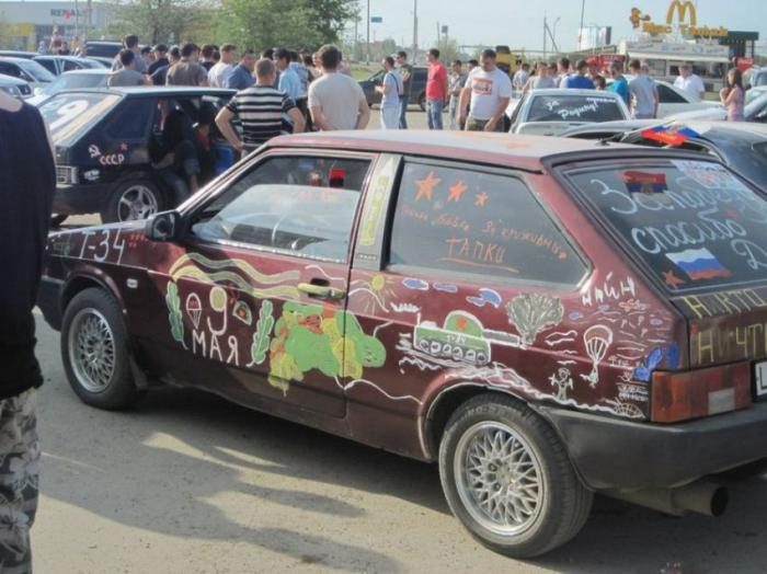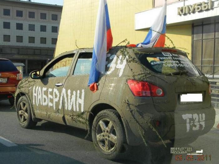 Как автолюбителю выразить гордость за Победу наших предков? Конечно же украсить своего железного коня! Большинство ограничивается георгиевскими ленточками, а некоторые идут еще дальше! Вашему вниманию подборка народного творчества ко Дню Победы.