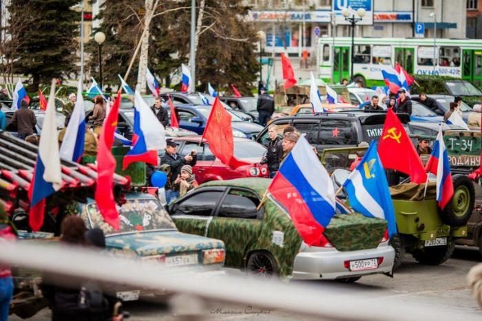 С великим праздником! У нас тоже сегодня был автопробег с российскими и красными флагами и многие машины были так задекорированы, много молодежи участвовало, это радует.