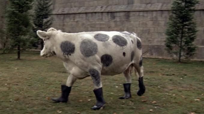 Корова в сапогах — кадр из комедии ,, Совершенно секретно,,