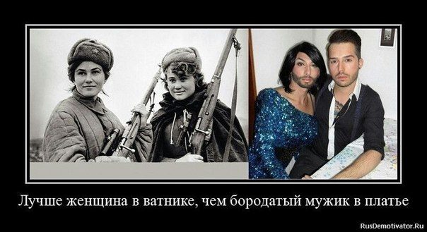 Отлично, особенно, — лучше женщины в ватниках, чем бородатый мужик в платье.++++++!!!