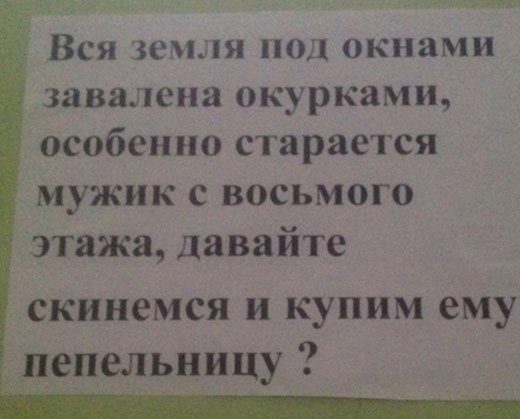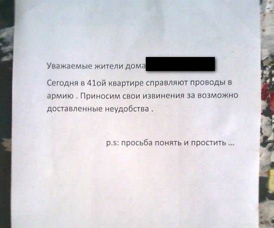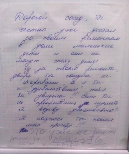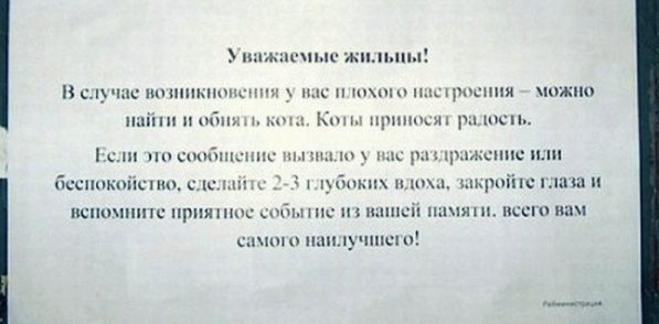 Довольно часто приходиться обсуждать с соседями различные жилищные вопросы как посредством личного общения, так и через объявления. Самые уморительные из них и представлены вашему вниманию.