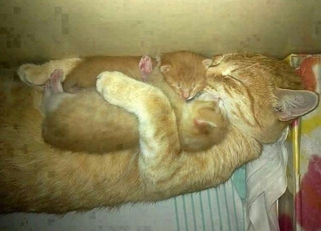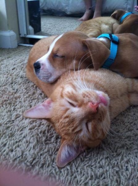Нет милей картинки, чем кошачье-собачьи обнимашки. Особенно сонные.
