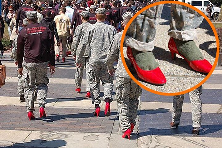 В США разразился скандал — военные стали ходить в женских туфельках. Оказывается, американские феминистки под любыми предлогами заставляют своих мужчин пройти в своих старых туфлях одну милю по городу. Во время акций они собирают пожертвования для пострадавших от мужского насилия.