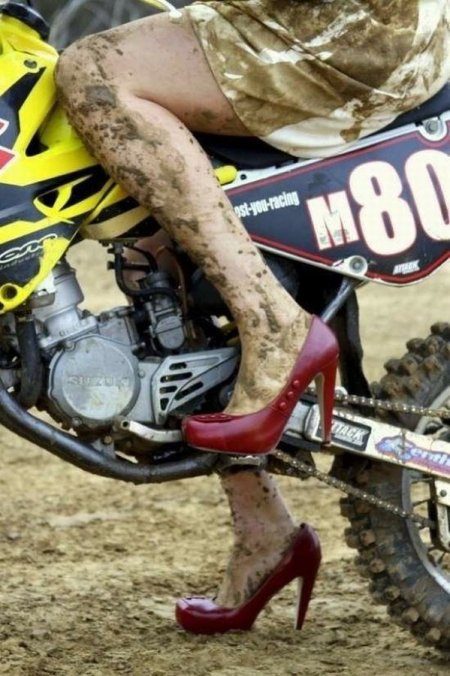 Девушка на мотоцикле с грязными ногами и ЧИСТЫМИ ТУФЛЯМИ?!? Да, ладно!))