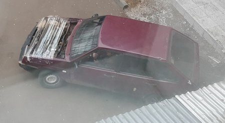 Следующие кадры… он опирается на дверь багажника, она захлопывается и рукожоп падает мордой в телевизор, а машина от резкого толчка все таки укатывается…
