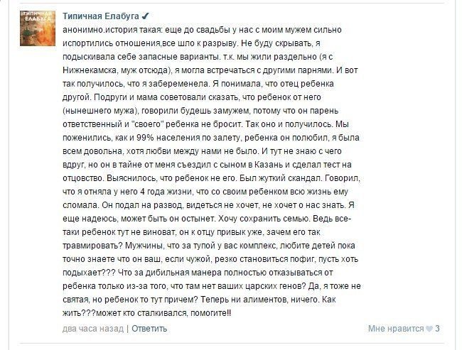 Ох, тёлка из Елабуги красава! Значит как врать мужику, что ребёнок его-тока в путь, а теперь «как же так? Какая сволочь!» Ребёнка жалко уже только за то, что мать-сука.