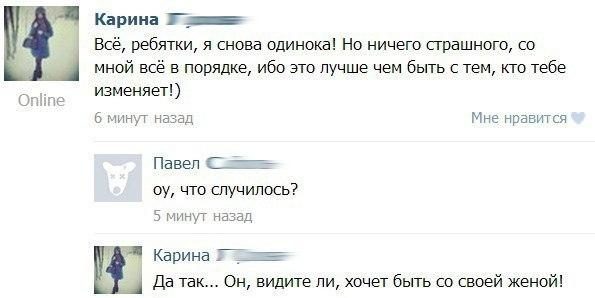 Самые прикольные диалоги пользователей социальных сетей на очень актуальные темы. Друзья, позитивного вам дня!