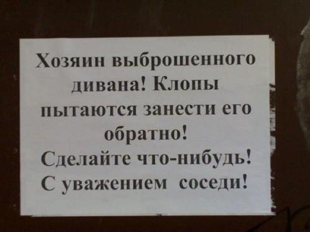 Очень часто так случается, что приходиться обсуждать со своими соседями различные совместные жилищные вопросы. Представляю вам уморительную подборку подобных диалогов.