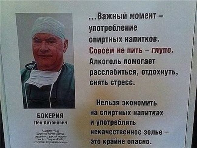 Такого врача надо гнать в шею улицы подметать, а диплом, если он у него есть, торжественно сжечь на спиртовке. Кто пьет алкоголь, тот предатель Родины. Забыли, как нас в 90-х Роялем спаивали? Думаете для чего? Победить невозможно, значит надо уничтожить с помощью алкоголя, никотина и других наркотиков.