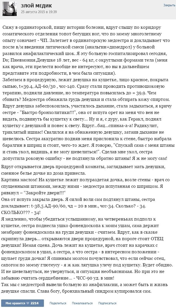 Прикольные байки от медиков. Очень смешно, почитайте!