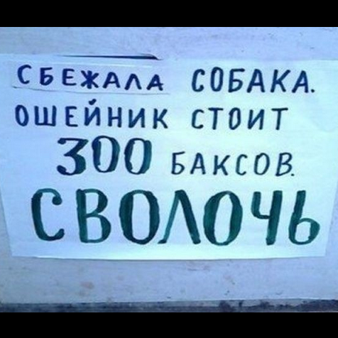 Помню одно прикольное объявление: «Пропало животное, откликается на кличку козёл и сволочь. Боится слов, где зарплата, где шлялся? Вознаграждение не обещаю, только если сами заплатите». Вот и думаю, не пропала несчастная скотинка, а сбежала!