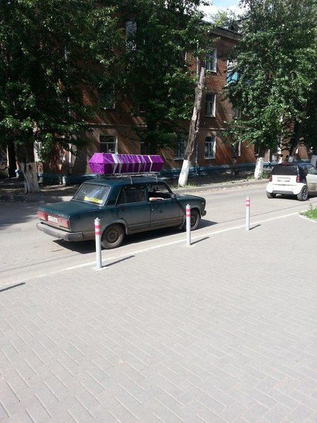 Ой, потешила, Юлька! Это ж не сотый уровень а выше! Особенно, здоровенная сварная бытовка верхом на «Москвиче» и мотоцикл, наполненный свиньями… А сиреневый гроб, жаль не догадались привязать широкой розовой лентой с большим бантом… было б намного гламурней…