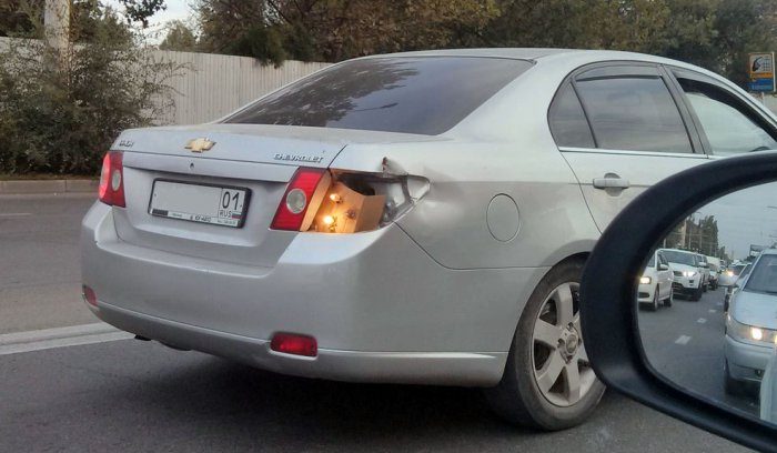 Симфония из труб весьма впечатляет!.. А автомобиль, задняя часть которого упокоена на каких-то катках, ещё и едет!.. Видимо, руки могут расти из разных мест…