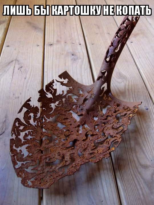 Лопата рыбацкая, для зимнего промыслового лова, такими лопатами из лунок(майн, майна) откидывают мелкое ледяное крошево (шугу, шуга). Обычно в лопате просто сверлят отверстия, а эта сделана фигурно и красиво! )))