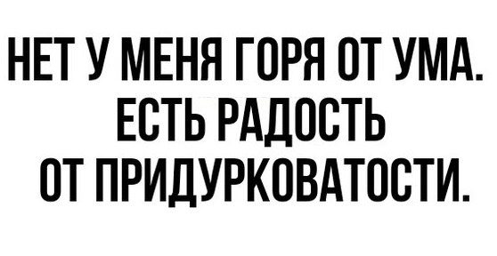 Нет горя от ума, есть радость от придурковатости!!! Это просто супер фраза для многих моих знакомых!