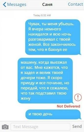 Про жену и дочку, а если бы вторая смс-ка не пришла? Этот вопрос теперь не даёт мне покоя!