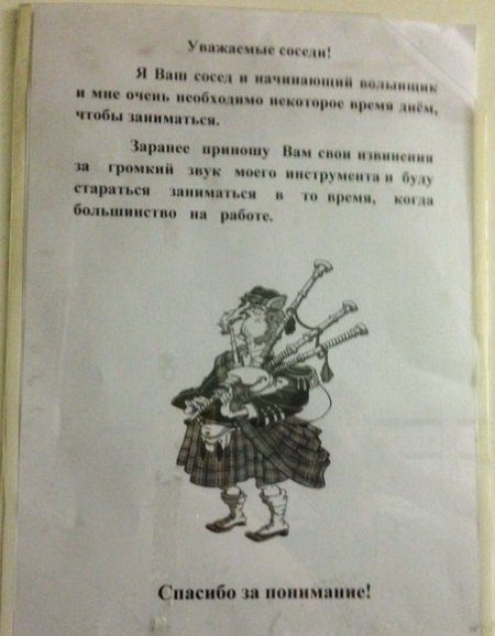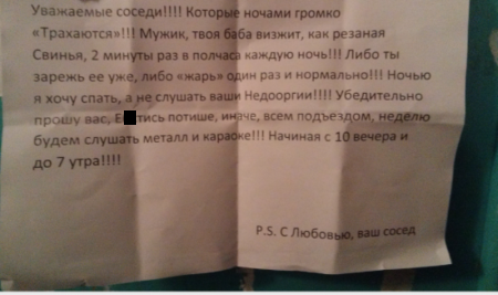 Всем нам приходиться обсуждать с соседями какие-то совместные жилищные вопросы как посредством личного общения, так и через занимательные объявления, некоторые из которых и представлены вашему вниманию. Посмотрите, вдруг что «возьмёте на вооружение»!