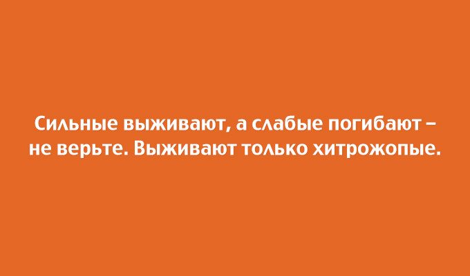 Про сильных, слабых и хитрожопых — это не неожиданная концовка, а вполне известный закон эволюции: выживают именно эти самые… поскольку вся эволюция и весь естественный отбор основаны именно на умении приспосабливаться!