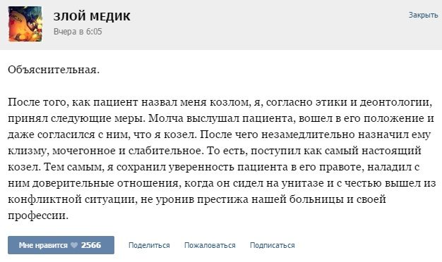 Очень смешная переписка медиков с описанием забавных случаев из их практики. Наслаждайтесь!