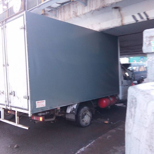 На фуре придурок. Он что, не видел куда прет?