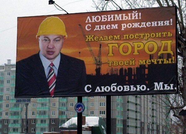 Каждый из нас видел рекламные плакаты, типа «Милая, я тебя люблю» и «С днём рождения, родная!». Очень уж любит наш народ потешить самолюбие участников поздравления. И получается у них это ну просто шедеврально! Вот посмотрите!