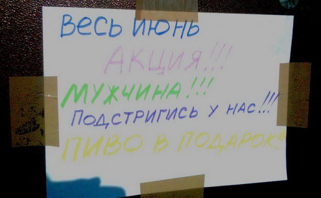 Ларёк — самосъёб, это шедевр…… Назвать бананы конспиративной кличкой «Киви» — тоже,,, кстати, недавно видел в магазине грейфруты, а на ценнике было написано: «ГРИБОФРУКТ»… Я чуть не покончил с собой, из-за того, что не прихватил на этот раз фотоаппарат…… Казино поставило главным призом «Запорожец» — очень круто (машина дорогая, импортная)!