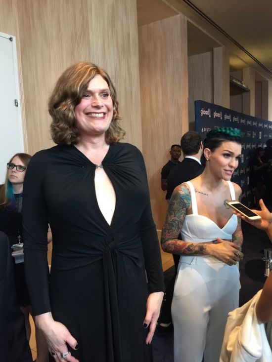 В новом образе Лилли Вачковски пришел/пришла на церемонию вручения кинематографической премии, где ему/ей вручили премию за лучший драматический сериал «Восьмое чувство».