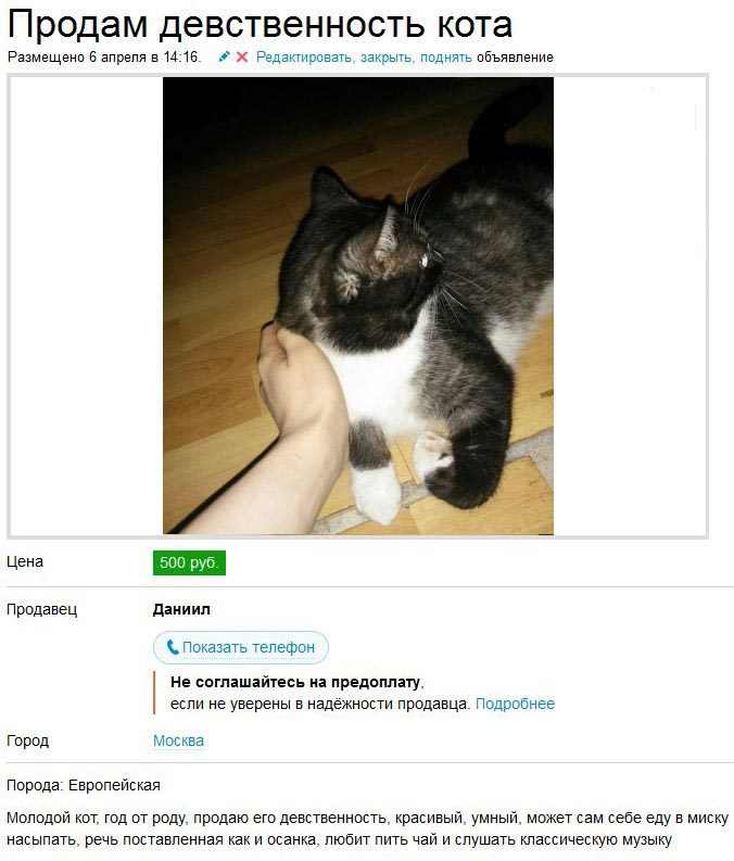 С котами явный перебор. а вот последнее объявление — самое классное.