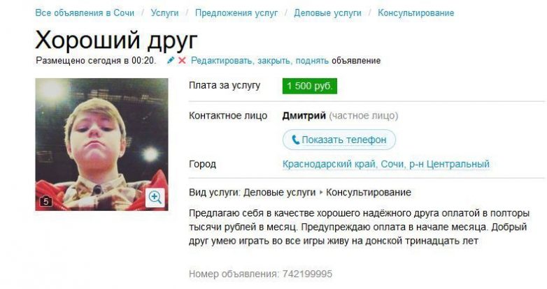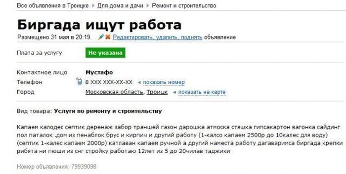 Классный сборник рекламы с этого сайта объявлений. Очень уж много приколов там попадается. Вот посмотрите!