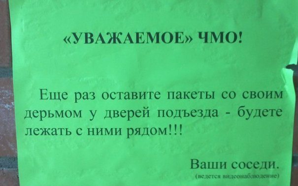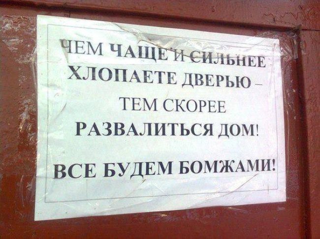 Очень часто приходиться с соседями обсуждать совместные жилищные вопросы, мешающие жить другим людям, либо посредством личного общения, либо через объявления, некоторые из которых и представлены вашему вниманию. Это очень смешно!