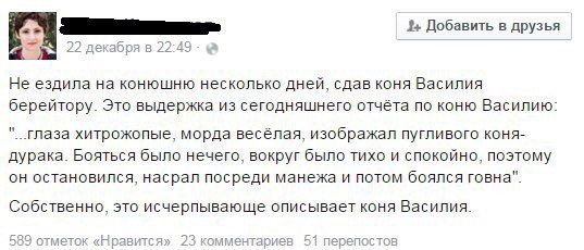 Всё супер! Тема про дезодорант актуальна сейчас как никогда, а конь Василий-это портрет моего бывшего))))))))