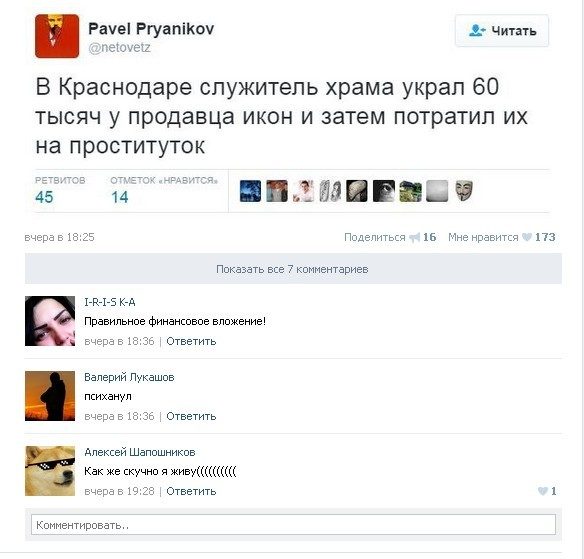Угарные комментарии пользователей на различные темы. Позитивного вам дня!