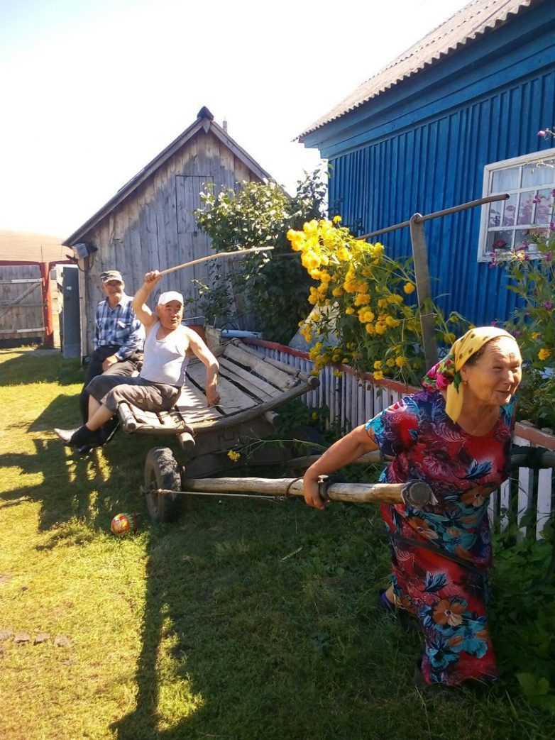Чайки порадовал с бабкой и внучкой в огороде)))