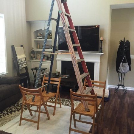 Особенно тот, кто лезет чинить фонарь с лестницы на двух столах…