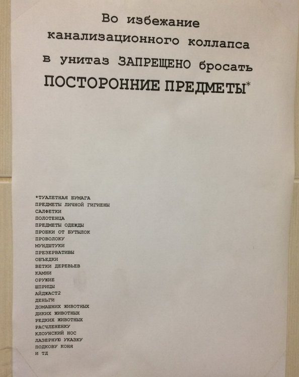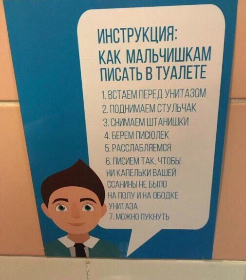 У нас тоже есть инструкция по пользованию цеховых сортиров, шедевр остроумия… но почему то в административном корпусе в «кабинетах» таких нет :)