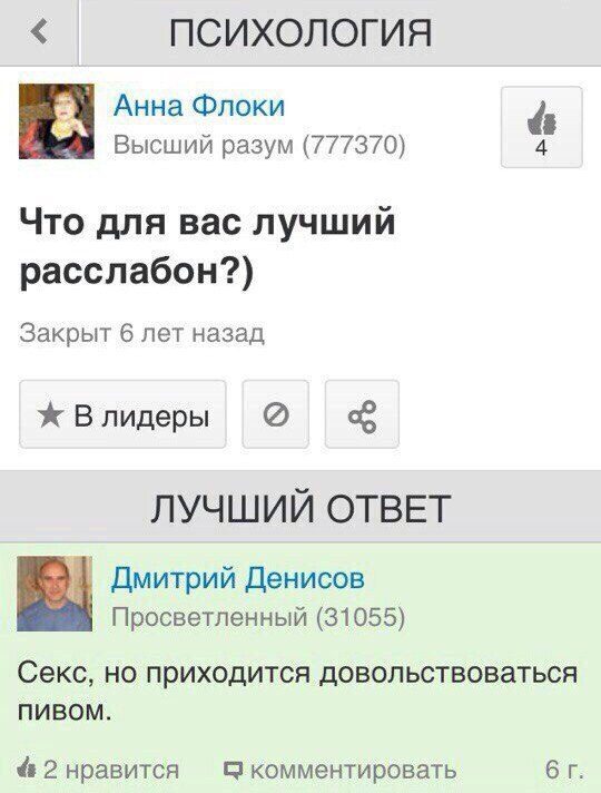 Есть такой шедевральный интернет-сервис «Ответы Mail.ru — поиск ответов на любой вопрос», где пользователи задают различные вопросы и получают на них ответы от других пользователей.