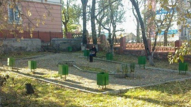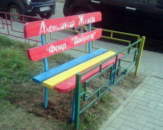 Скамейка была одна, компенсировали урнами))