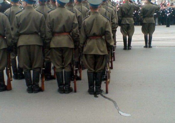 Такой «иноходец» наверное у всех был)) У меня в батарее (я офицер), как то в один из призывов аж двое таких было. Так и не зашагали… вот уж точно медведь на ухо наступил!