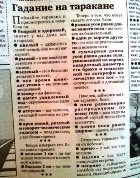 Ребят! Кто одолжит таракана погадать на себя? Верну с процентами.