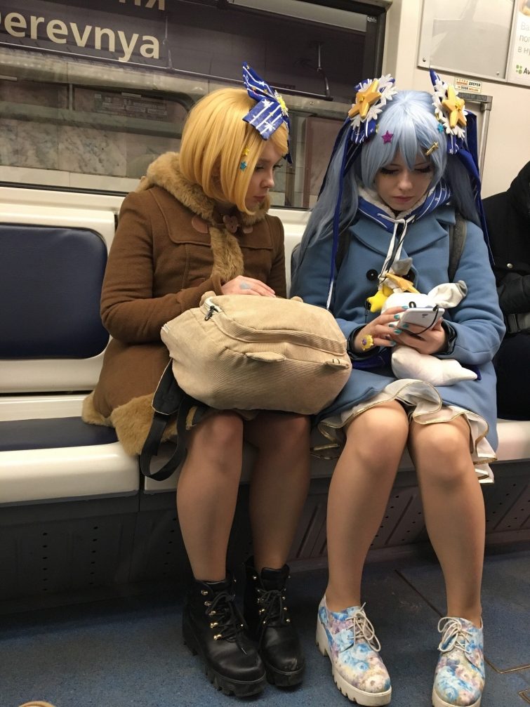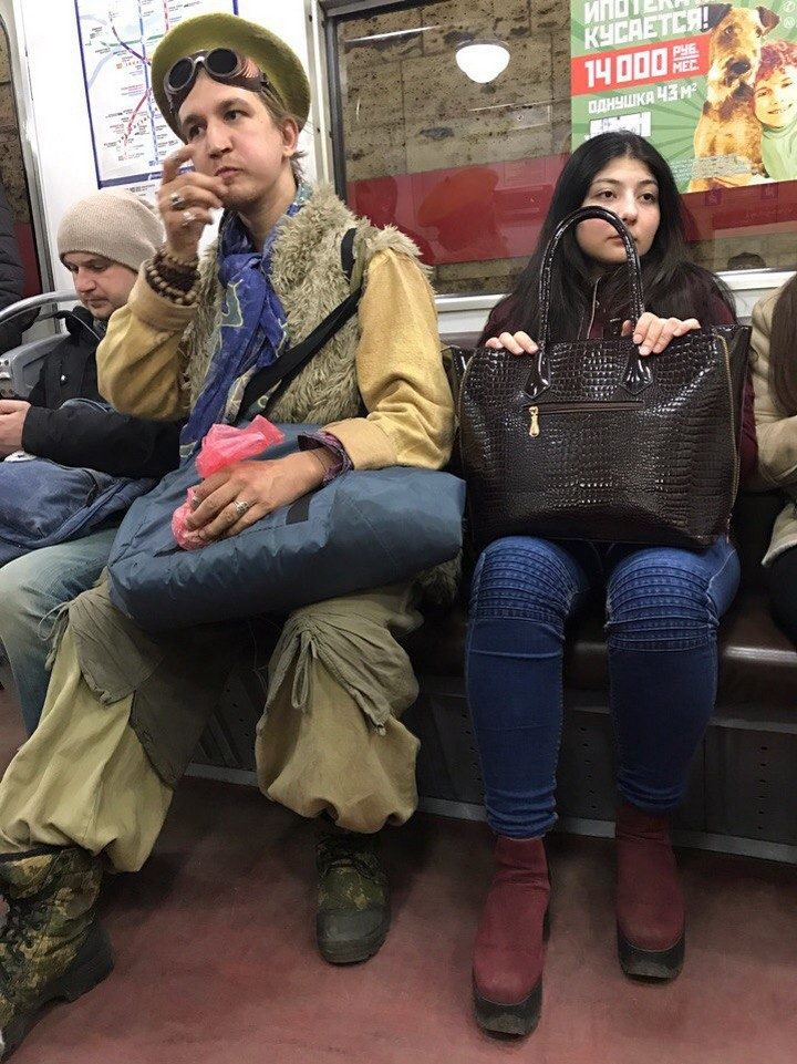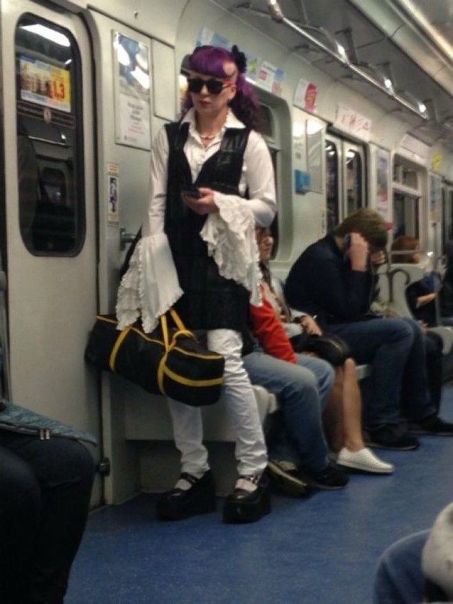 Думаю большинство и правда артисты — в смысле, участники каких-то уличных представлений, которым переодеваться негде, вот они из дома в костюмах и едут.