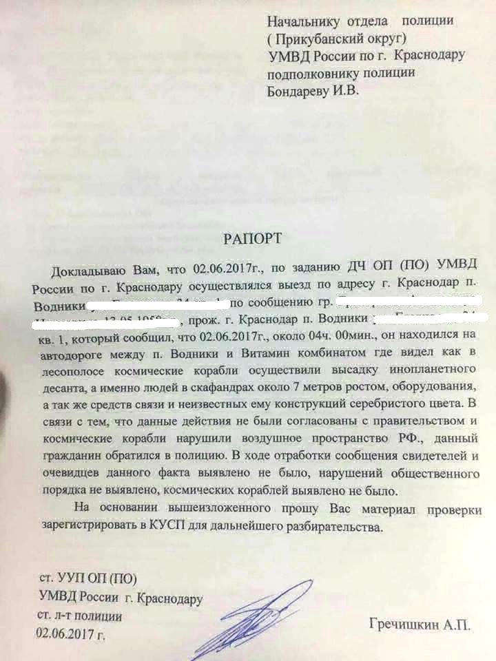 ст. л-т полиции Гречишкин А.П. — молодец. Редко можно увидеть грамотный рапорт. Принял заявление — составил рапорт. Обычно там работают не слишком умные…