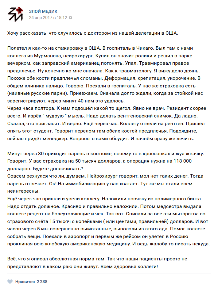Про американскую медицину чистая правда!!!