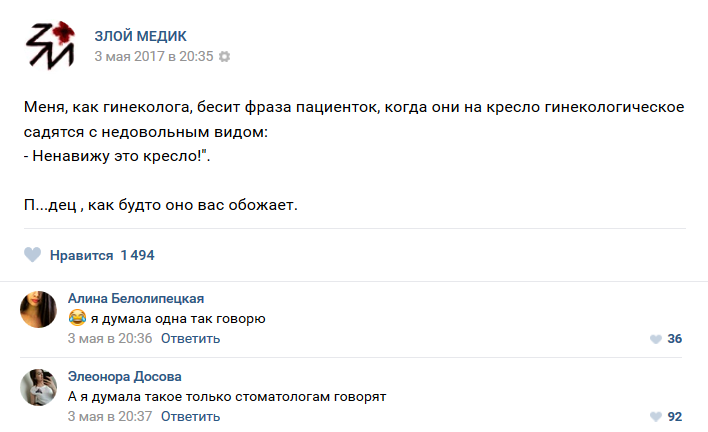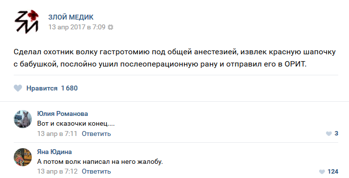 Подписалась в ВК на злого медика и поняла, почему он так редко появляется в приколах. Смешное там редко встречается, много безнадёжности.