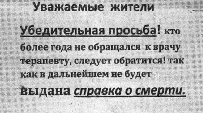 Прикольные объявления в медицинских учреждениях