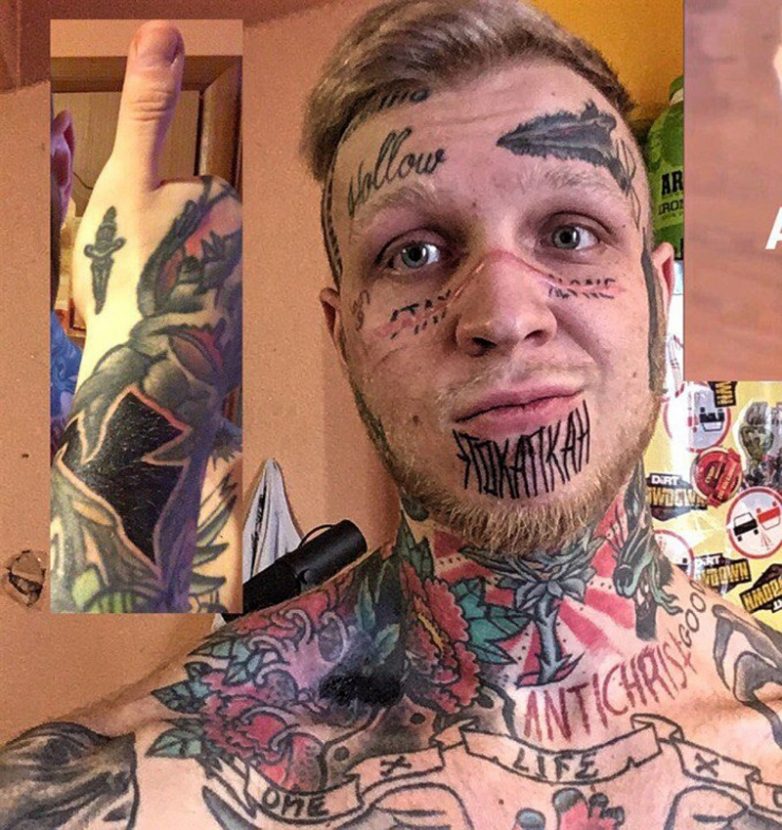 Согласен. Когда столько наколок, да еще на лице — это повод для обращения к психотерапевту.